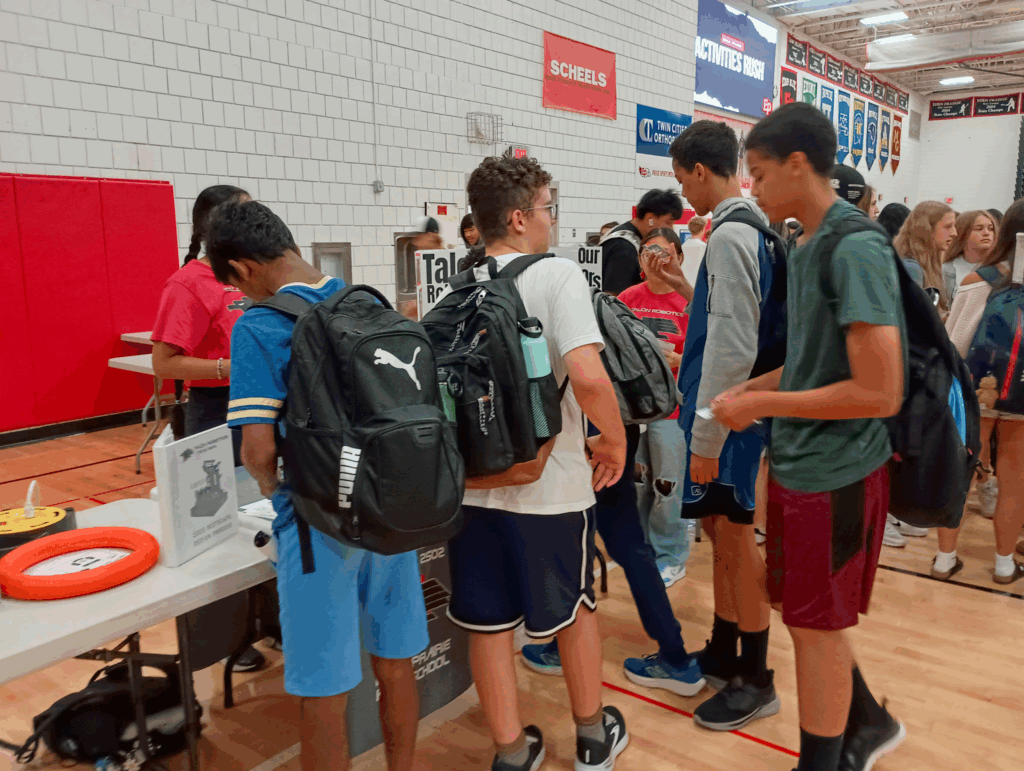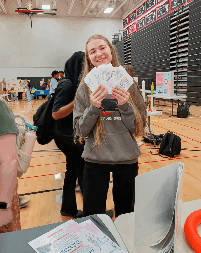 It’s the time of year for Eden Prairie High School’s annual Activities Rush! Our Talon captains and outreach lead set up a table and tri-fold showcasing our sponsors, robot information, and events. Meanwhile, our 2023 robot, Cronus, got to see some action after some quick fixes. Students were more than happy to catch some notes amidst their club searching.