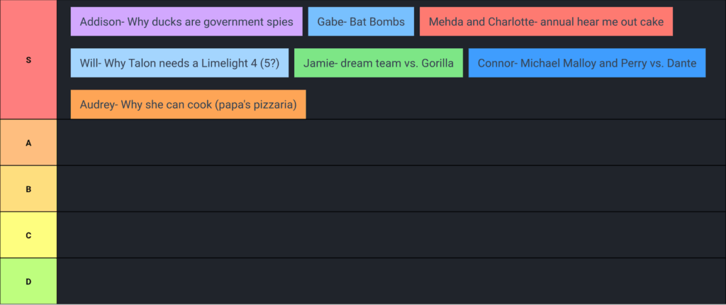 Here is a completely accurate and not at all biased tier list of the presentations given that thursday: